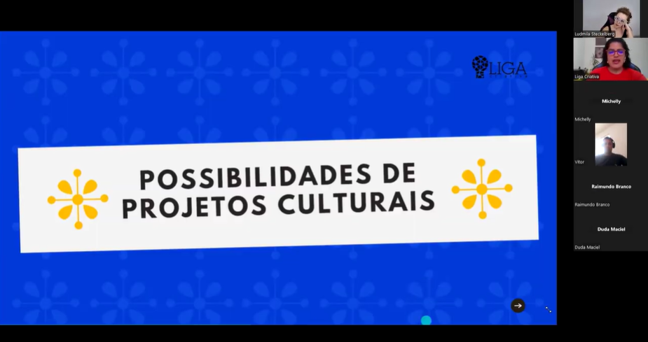 A formação “SimBora: Elaborar Projetos – Região Metropolitana de Ceará” foi resultado de uma correalização entre o Comitê de Cultura de Ceará e a Liga Criativa Produções Culturais LTDA, especializada em capacitações culturais.